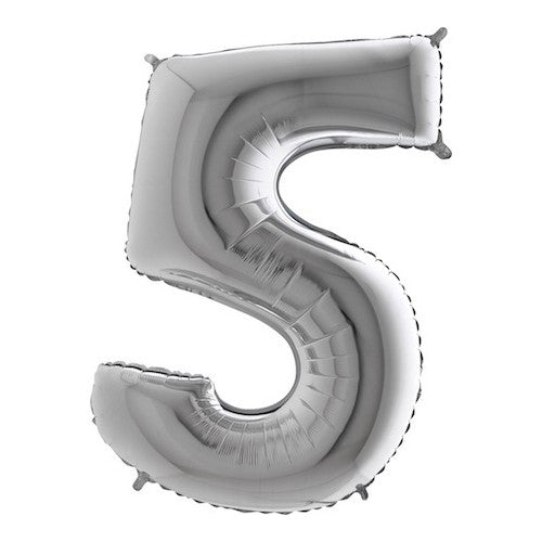 Cijferballon "5" - zilver Deze cijferballon is de ideale manier om een feestelijke en luxe sfeer toe te voegen aan speciale gelegenheden zoals verjaardagen, jubilea of...