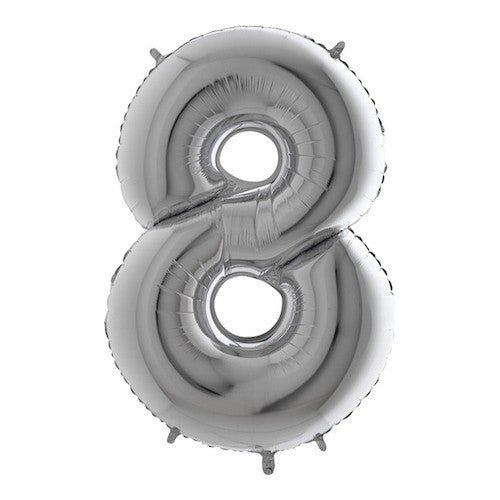 Cijferballon "8" - zilver Deze cijferballon is de perfecte manier om een feestelijke en luxe sfeer toe te voegen aan speciale gelegenheden zoals verjaardagen, jubilea of...