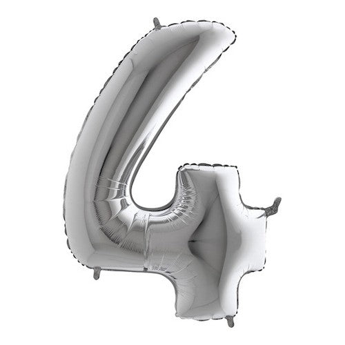 Cijferballon "4" - zilver Deze cijferballon is de perfecte manier om een feestelijke en luxe sfeer toe te voegen aan speciale gelegenheden zoals verjaardagen, jubilea of...