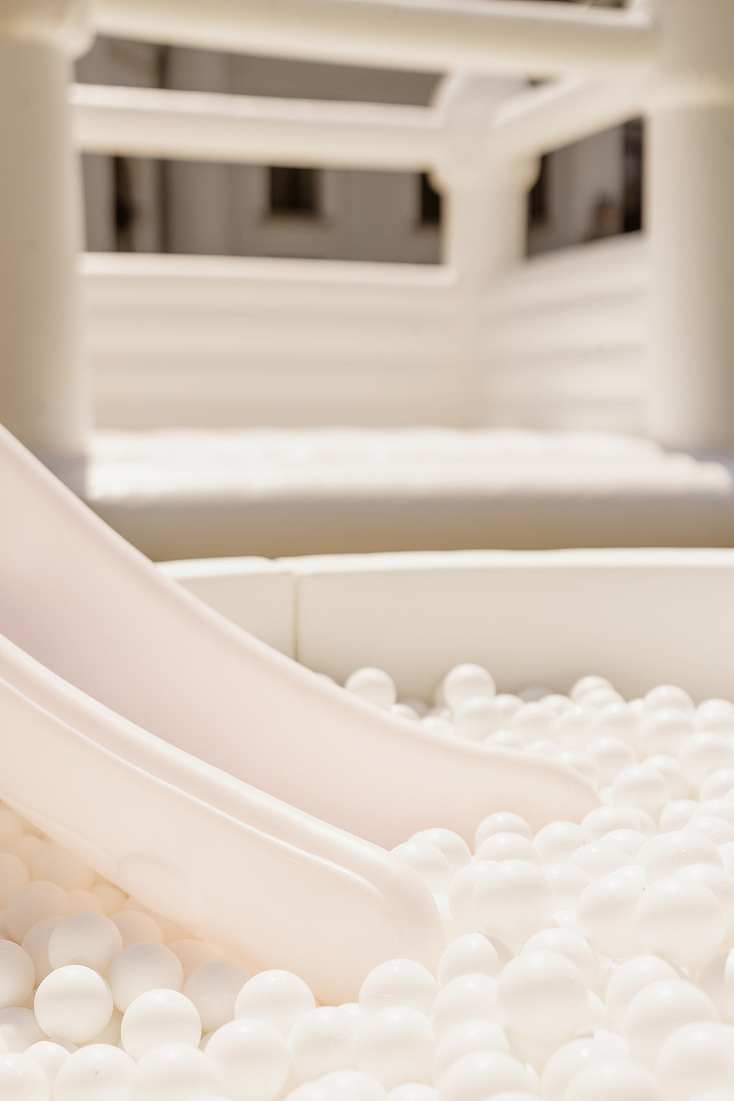 Een stijlvolle combo voor elk kinderevent: ons softplay ballenbad mét bijpassend wit springkasteel. Perfect voor babyshowers, doopfeesten, verjaardagen of fotoshoots in een zacht en tijdloos decor.
